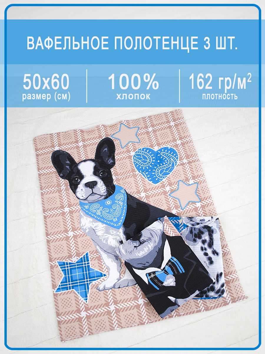 • Набор вафельных полотенец купон Собаки голубой (50х60 - 3 шт.)