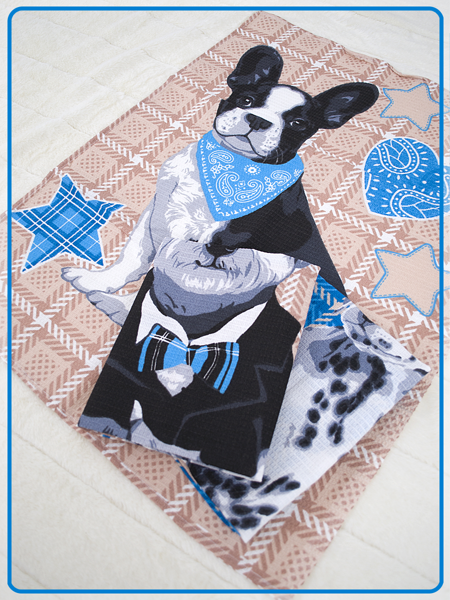 —Набор вафельных полотенец купон Собаки голубой