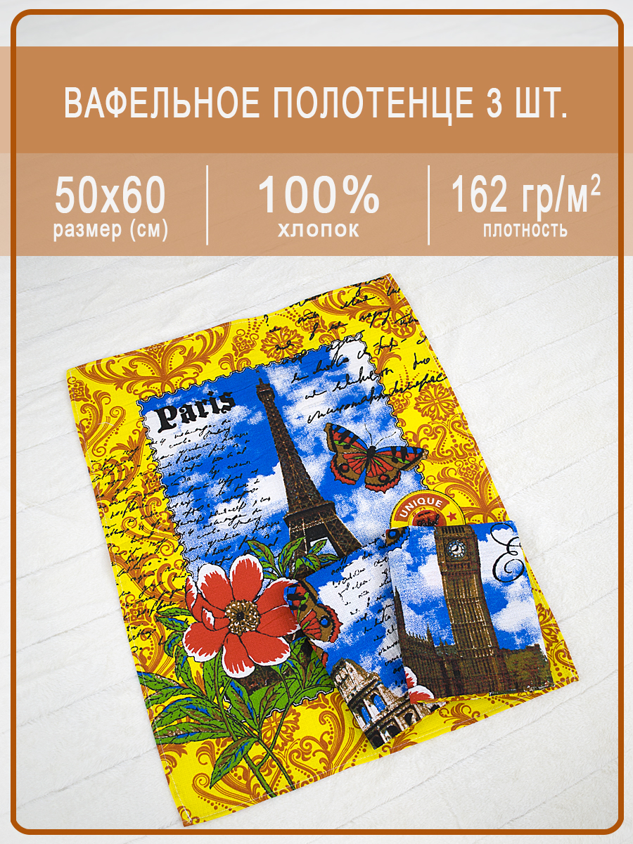 • Набор вафельных полотенец купон Достопримечательности желтый (50х60 - 3 шт.)