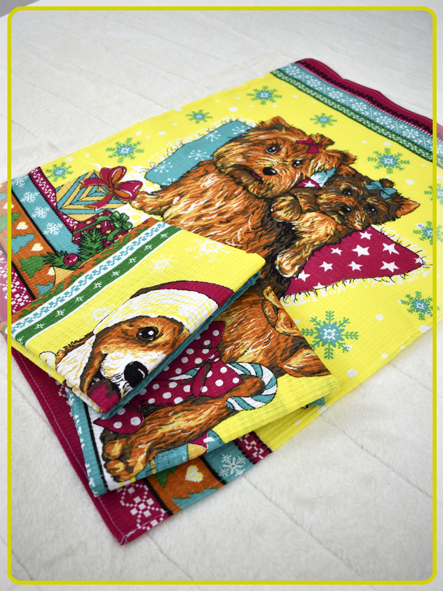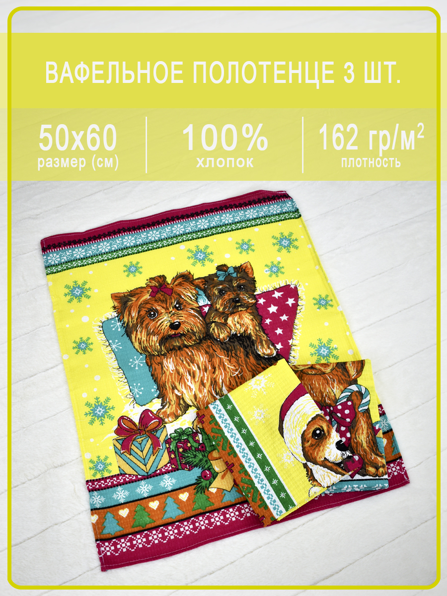 • Набор вафельных полотенец купон Щенята желтый (50х60 - 3 шт.)