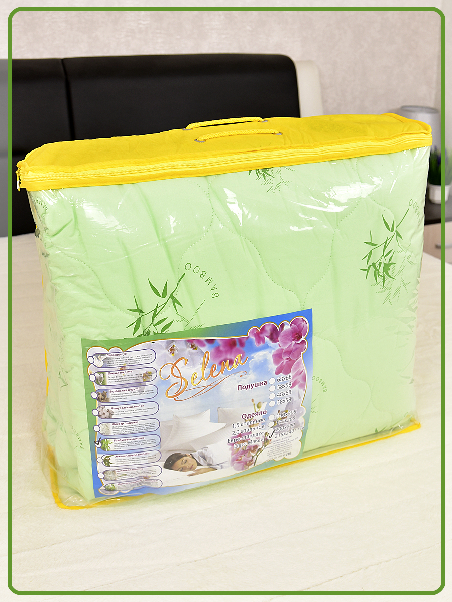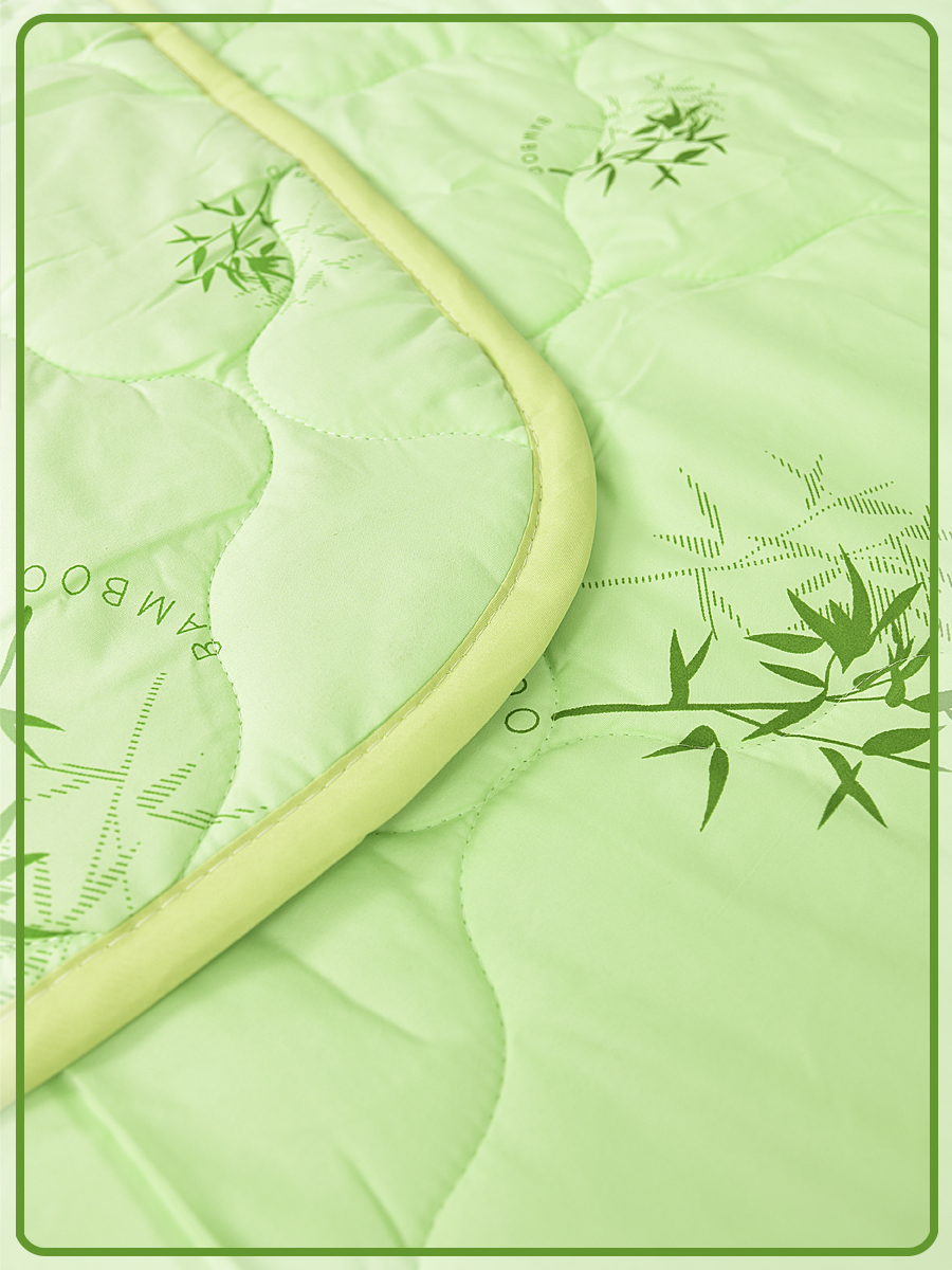 Наполнитель бамбуковое волокно - не аллергичное, гигиеничное, способен к терморегуляции и легкое, не давит на тело во время сна. В нём не уживаются вредные микроорганизмы так, как обладает антисептическим действием. Не скапливает статическое электричество. Не имеет запаха и не впитывает в себя окружающие. Не требует химчистки, не скапливает пыль и вредные вещества из окружающей среды.