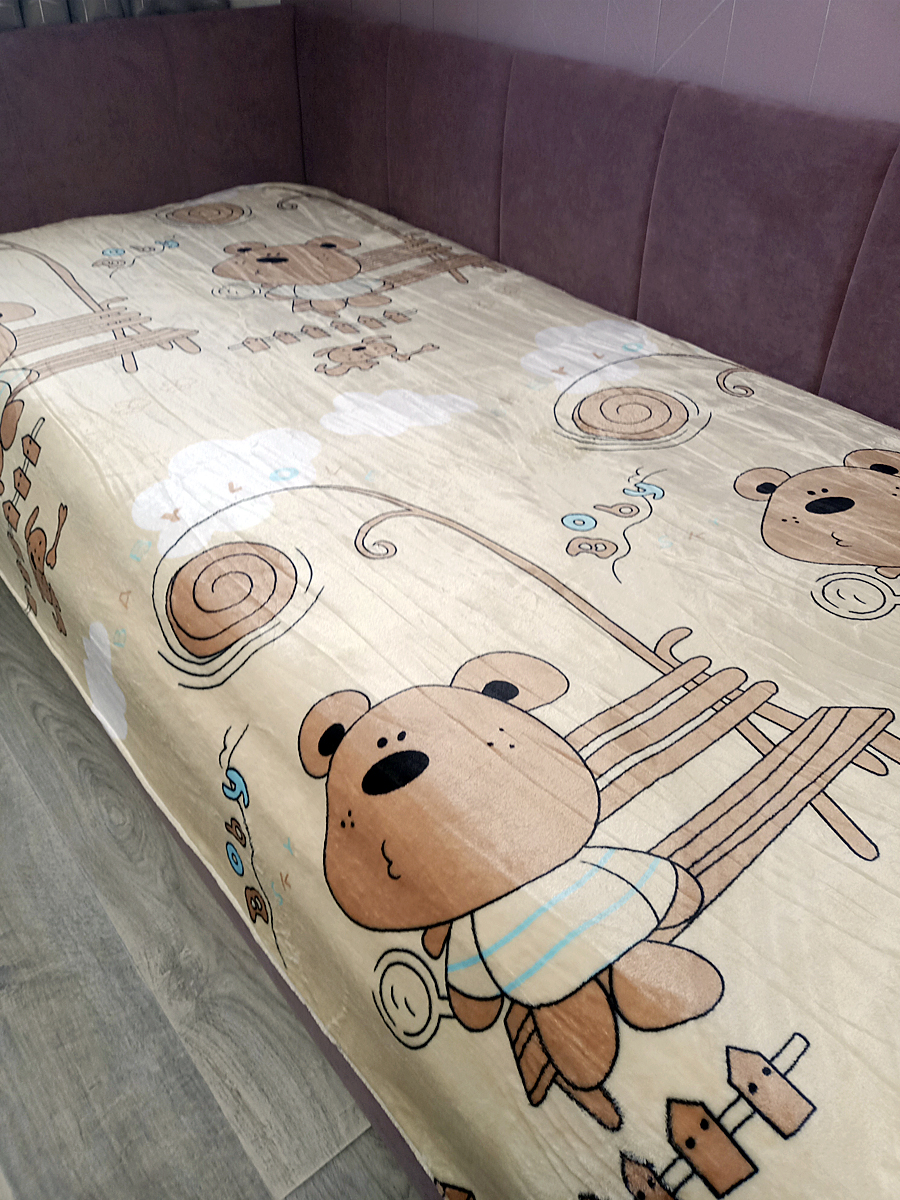—Детский плед 1,5 спальный велсофт Мишка на скамейке