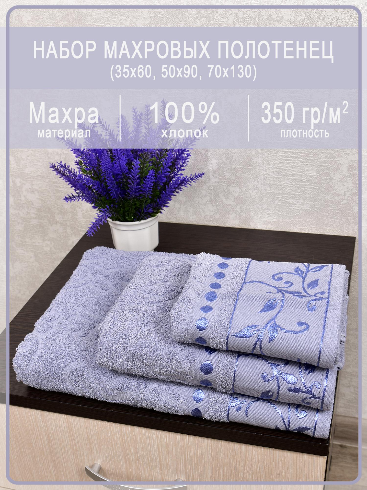 • Набор махровых полотенец Жаккард 3 шт серый (70х130+50х90+35х60)